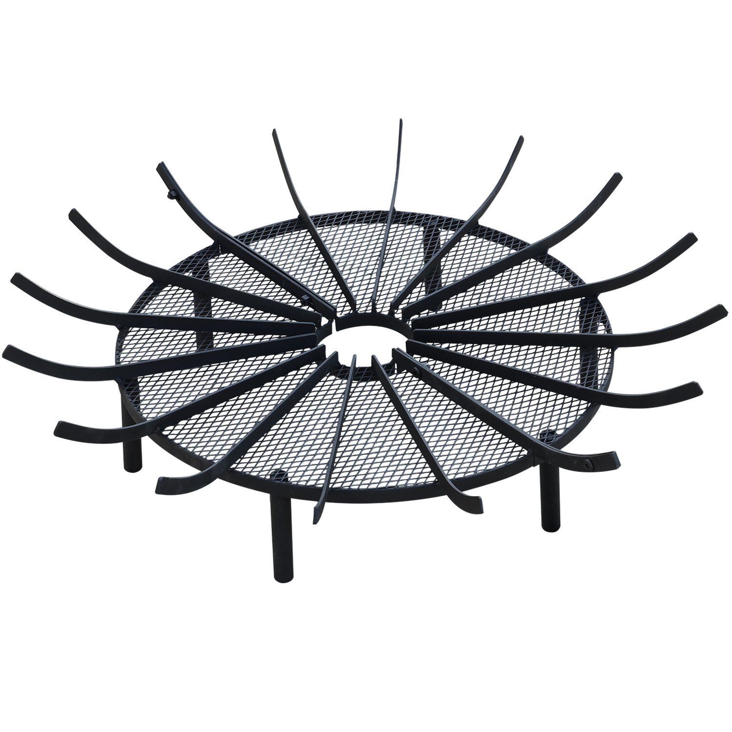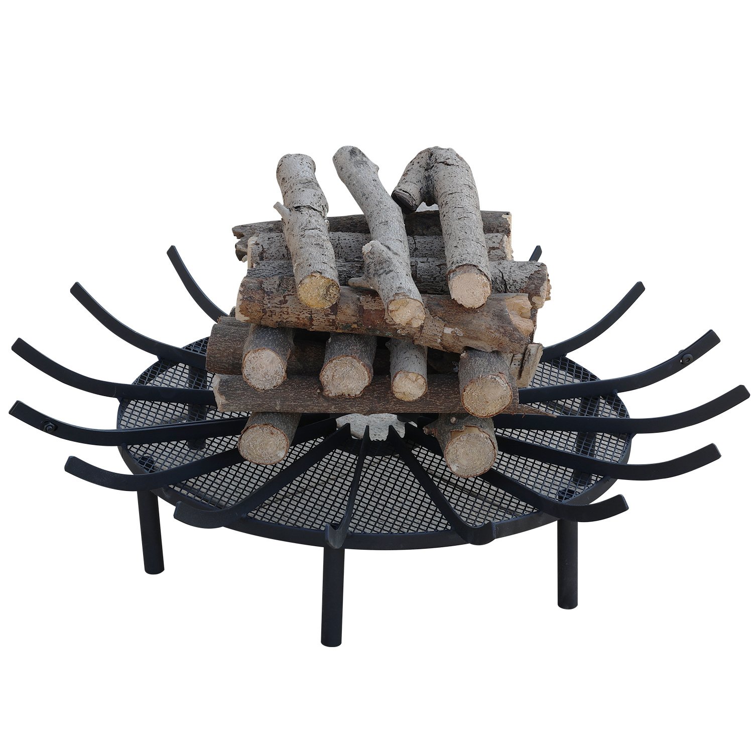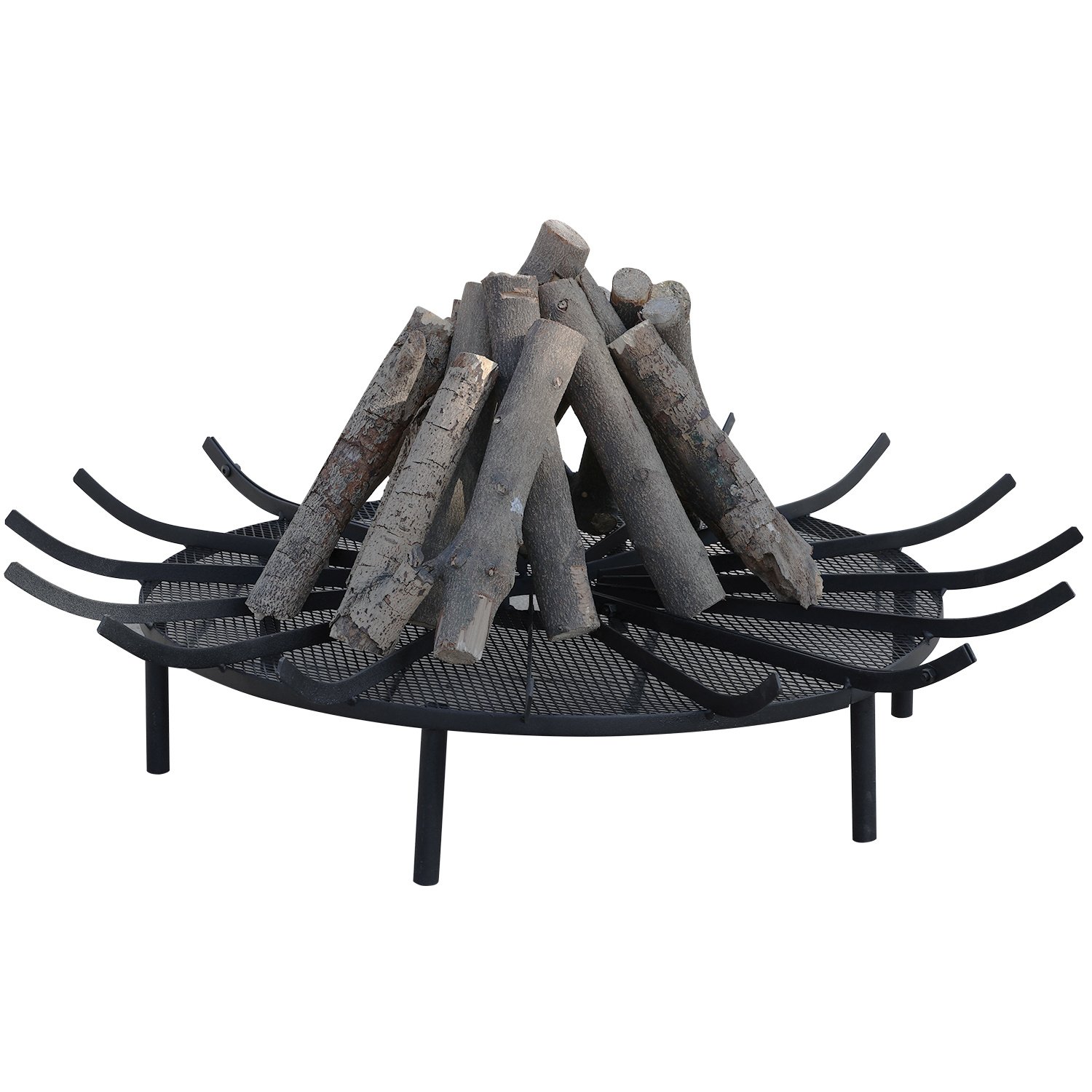Dimension - Aoodor Firepit grate decorative measures 36 inch diameter x 7 inch high; 5 inch metal wire height from the ground. Raises the firewood from the chimney floor and hearth allowing for better air circulation. Makes it incredibly easy to start a fire and produces an ample amount of heat. Iron structure fireplace log holder rack will last a long time